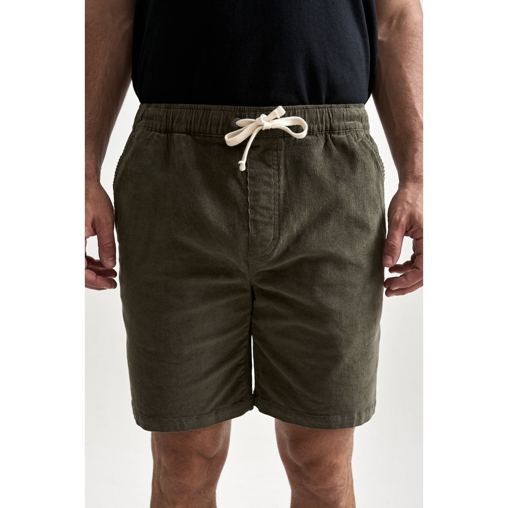 A Bermuda de Veludo Jogger Glaciares é confeccionada em veludo canelado de 16 canais, com composição de 97% algodão e 3% elastano, oferecendo uma sensação de maciez e aconchego.