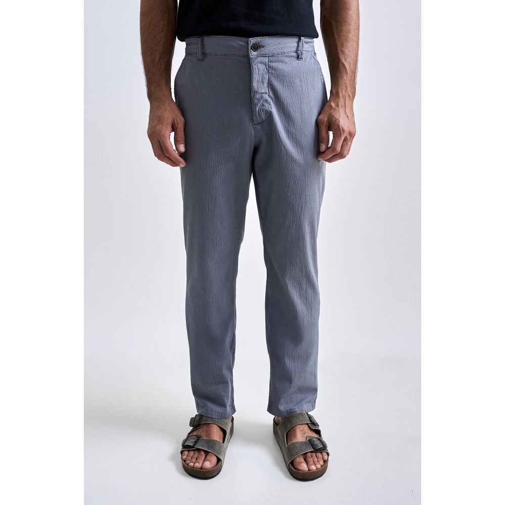 A peça passa por um processo de estonagem especial, conferindo um acabamento único. Com um cós fixo chino e modelagem confortável, a calça é ideal para ocasiões casuais.