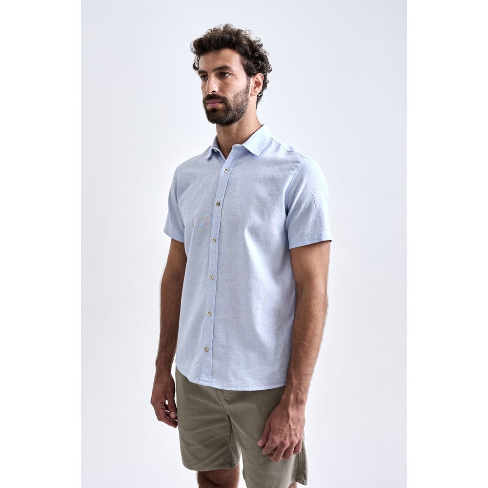 A Camisa de Linho Belize Manga Curta foi desenvolvida para dias mais frescos, com design de manga curta, modelagem regular e sem bolsos.