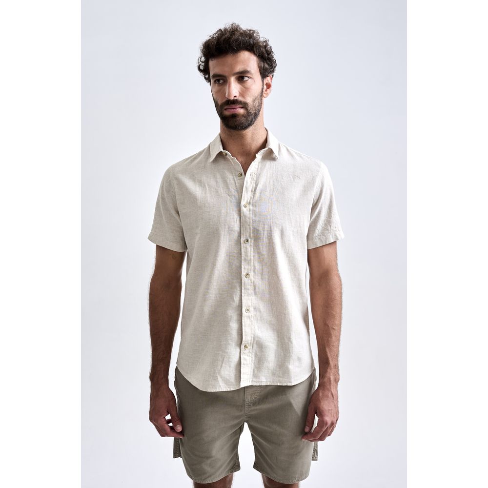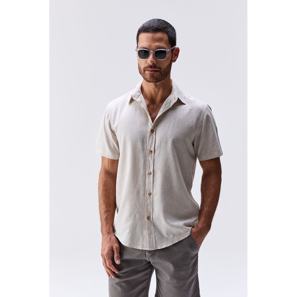 A Camisa de Linho Belize Manga Curta foi desenvolvida para dias mais frescos, com design de manga curta, modelagem regular e sem bolsos.