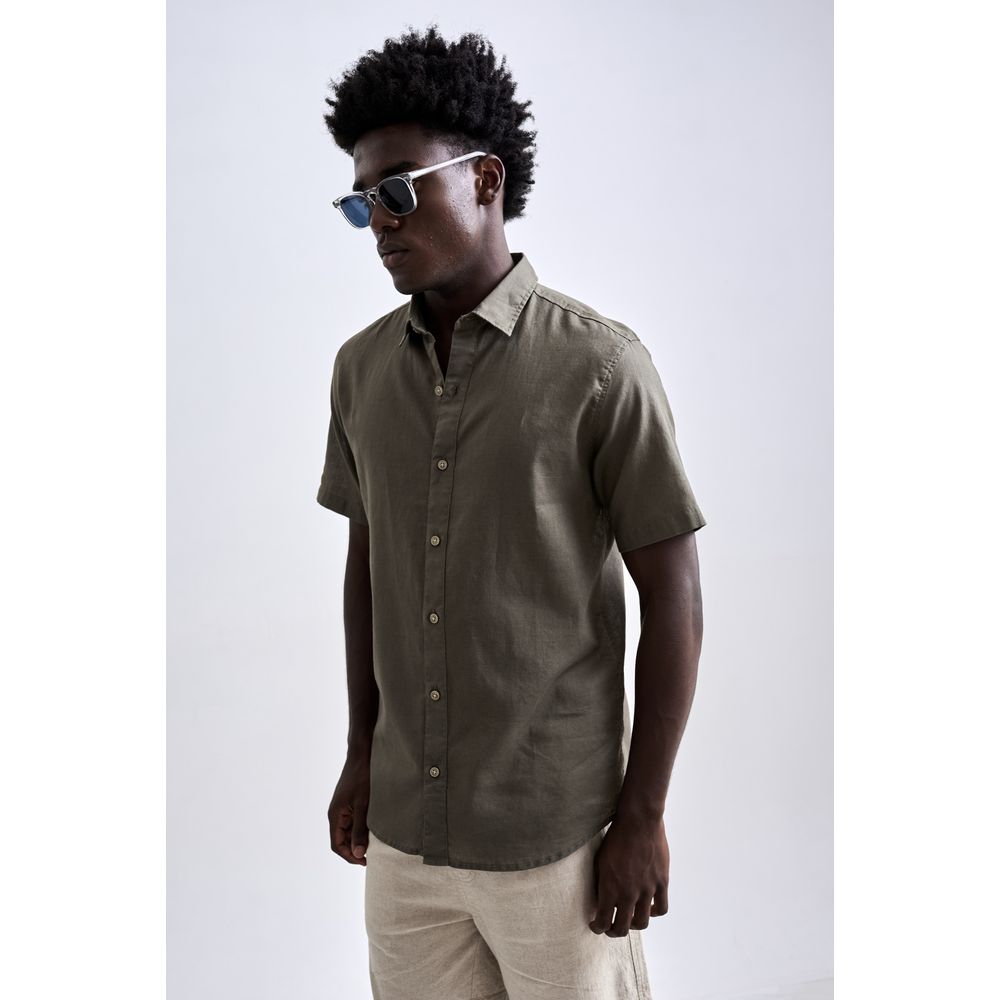 Camisa De Linho Cayman Manga Curta Verde