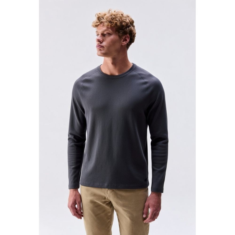 Com modelagem de gola careca diferenciada, apresenta gola no próprio tecido com largura mais estruturada, acabamento interno no cobre-gola, cava raglan com costuras rebatidas e barras de mangas e corpo com largura ampliada, garantindo melhor estrutura, durabilidade e um visual limpo e refinado. Conta ainda com etiqueta placa aplicada na lateral esquerda e etiqueta clip da marca nas costas, reforçando a identidade da linha Black.