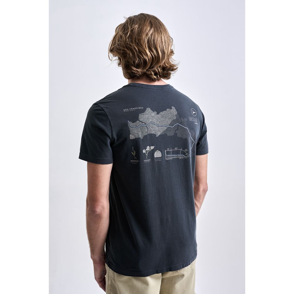 Camiseta em tecido 100% algodão penteado 30/01, pré-encolhida, pré-lavada e amaciada. A peça conta com reforços de costura na gola e nos ombros para melhor estrutura e durabilidade. A estampa é feita com tinta à base d’água, minimizando o impacto ambiental e reduzindo o uso de produtos químicos na confecção da peça.