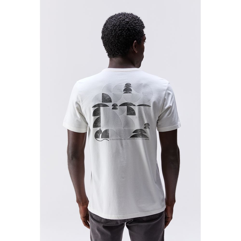 Camiseta em tecido 100% algodão penteado 30/01, pré-encolhida, pré-lavada e amaciada. A peça conta com reforços de costura na gola e nos ombros para melhor estrutura e durabilidade. A estampa é feita com tinta à base d’água, minimizando o impacto ambiental e reduzindo o uso de produtos químicos na confecção da peça.