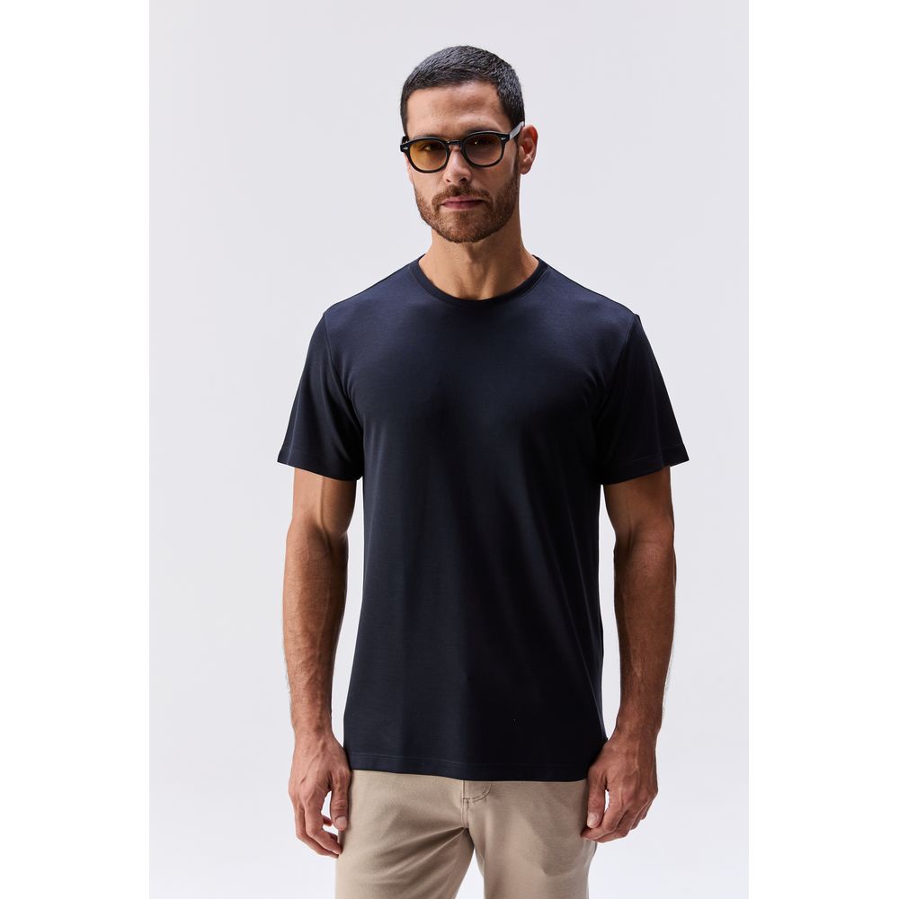 A Camiseta Interloque Modal Soft é confeccionada em malha interloque com modal e poliéster, oferecendo toque extremamente macio, caimento fluido e alta respirabilidade. A construção em interloque garante maior estabilidade ao tecido, enquanto o modal contribui para uma sensação suave na pele e conforto prolongado ao longo do dia.