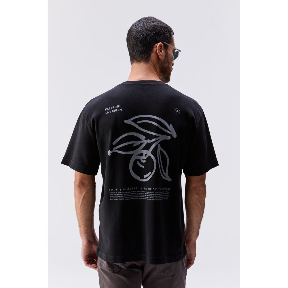 A estampa é desenvolvida com tinta à base d’água, minimizando o impacto ambiental e reduzindo o uso de produtos químicos no processo de confecção. O algodão utilizado é certificado pelo programa Better Cotton Initiative (BCI), assegurando práticas responsáveis e sustentáveis em sua produção.