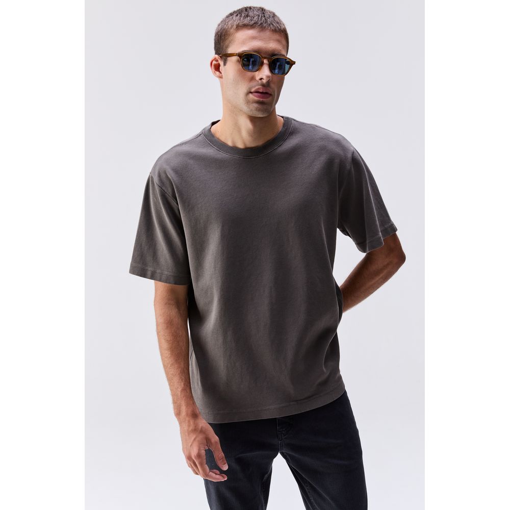 A modelagem Oversized é levemente mais ampla do que a modelagem regular da Austral, resultando em um caimento mais solto, que se alia ao tecido mais pesado da peça.