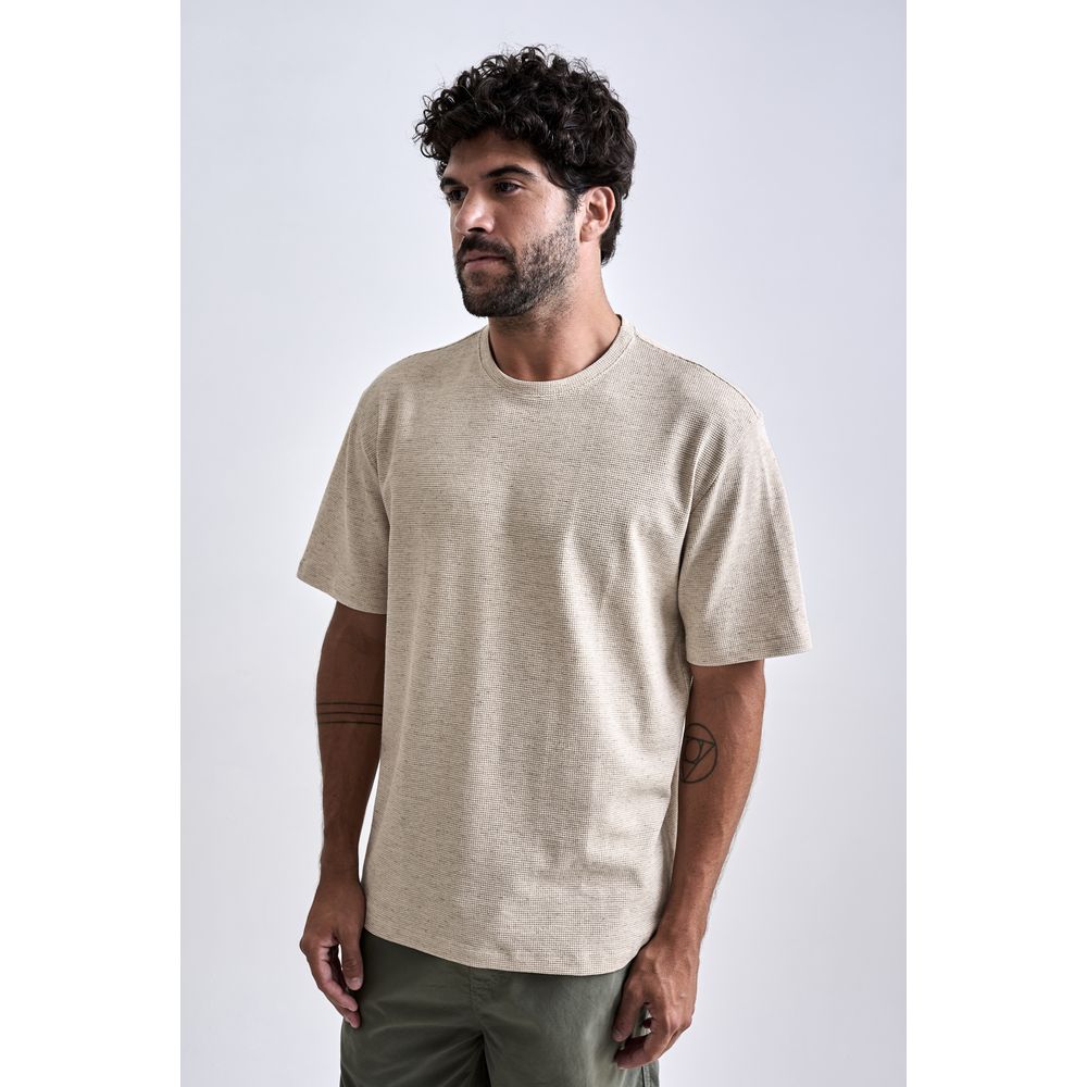 A Camiseta Oversized Malta é confeccionada em malha estruturada e texturizada, proporcionando um toque macio e um caimento encorpado. O tecido é composto predominantemente por algodão certificado pelo programa Better Cotton Initiative (BCI), que promove práticas agrícolas mais sustentáveis, reduzindo o impacto ambiental e melhorando as condições sociais dos produtores.