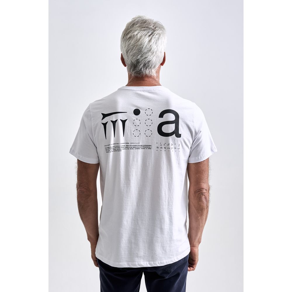 Camiseta em tecido 100% algodão penteado 30/01, pré-encolhida, pré-lavada e amaciada. A peça conta com reforços de costura na gola e nos ombros, para melhor estrutura e durabilidade. A estampa é feita com tinta à base d'água para minimização do impacto ambiental e redução do uso de produtos químicos na confecção da peça.