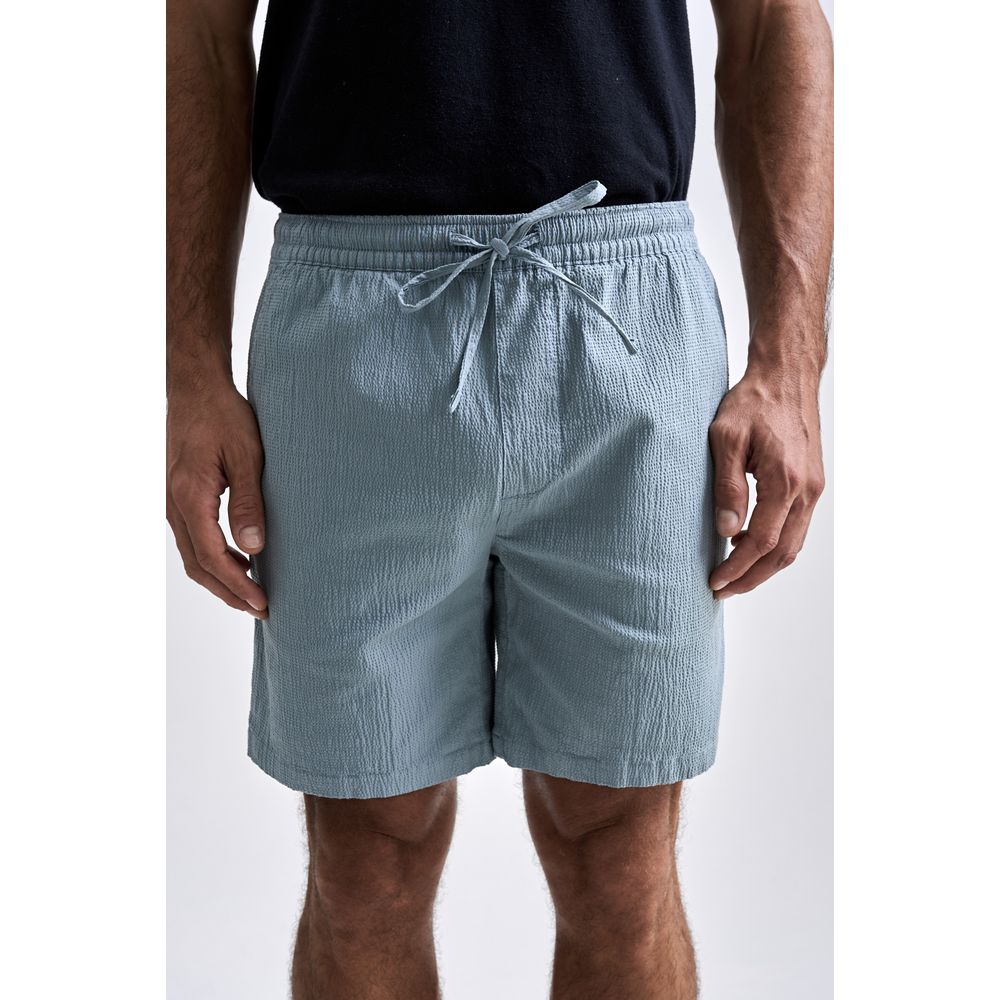 O Shorts Comfort Ruga é confeccionado em tecido seersucker de algodão com elastano, oferecendo leveza, respirabilidade e uma leve elasticidade para maior conforto durante o uso.