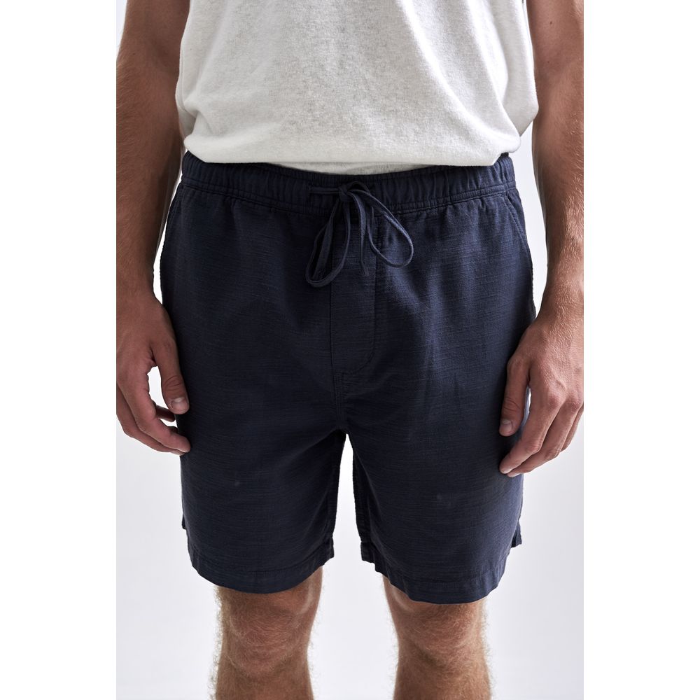 O Shorts Pinus é confeccionado em tecido 100% algodão flamê, proporcionando uma textura única, acentuada pelo tingimento estonado, que realça a textura enquanto marca levemente as costuras.