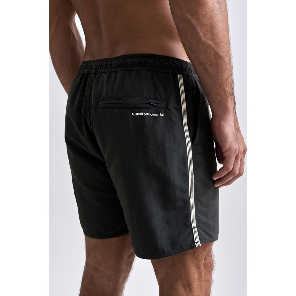 Os detalhes incluem galões laterais que acrescentam estilo à funcionalidade do swimshorts, além de forro em tela nos bolsos laterais para facilitar a drenagem de água e areia.
