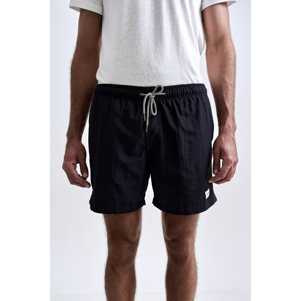 Bermuda d’água com cós elástico, ilhós metálico, cordão regulável e tecido 100% poliamida, que proporciona rápida secagem e respirabilidade.
