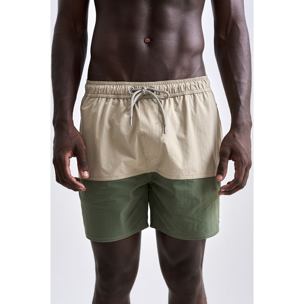 Com design bicolor inspirado em um estilo vintage, o swimshort combina tonalidades contrastantes que remetem a um visual retrô e moderno ao mesmo tempo. Apresenta cós elástico ajustável com cordão, ilhós personalizados e um bolso traseiro funcional, adicionando praticidade e segurança. O acabamento refinado garante maior durabilidade da peça.